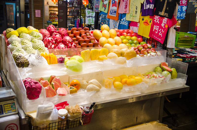 士林公有市場一樓入口處有很多賣水果的攤販 價格普遍都有標示