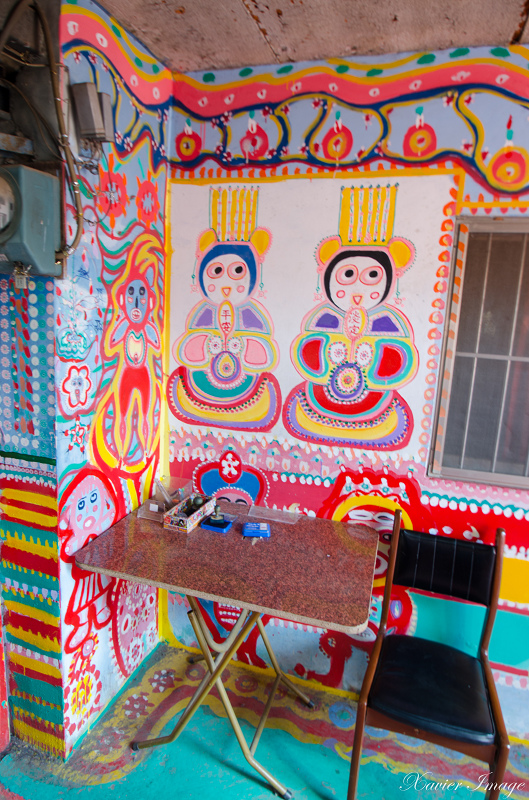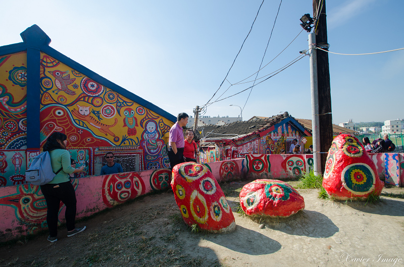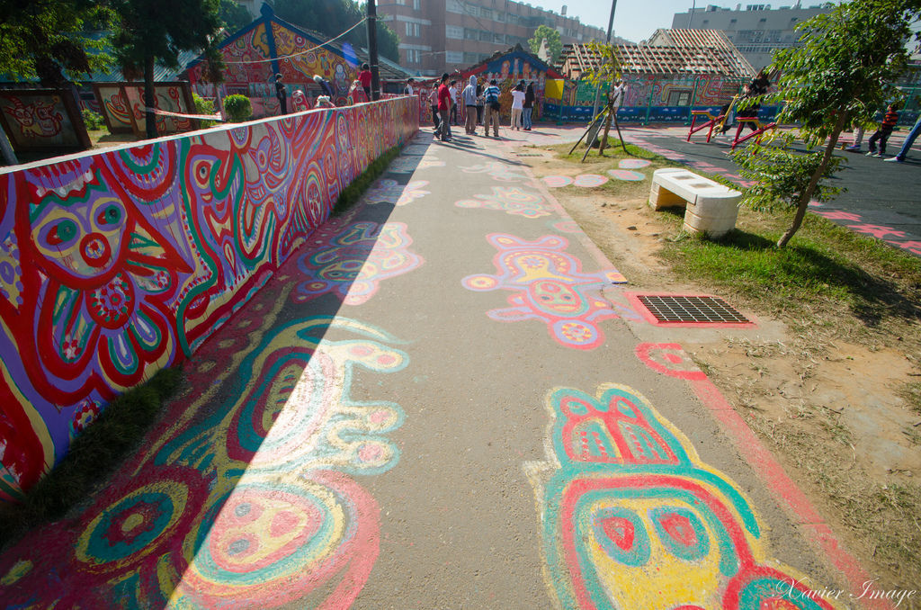 現在彩虹村正如其名,房子外牆、圍牆、門、走道、甚至郵筒上都充滿黃永阜五顏六色的彩繪,繪畫題材包羅萬象,有人、有動物、還有神,放眼望去讓人覺得可愛又充滿活力,即便在平常日也可以看到許多遊客特地包車前來遊玩。