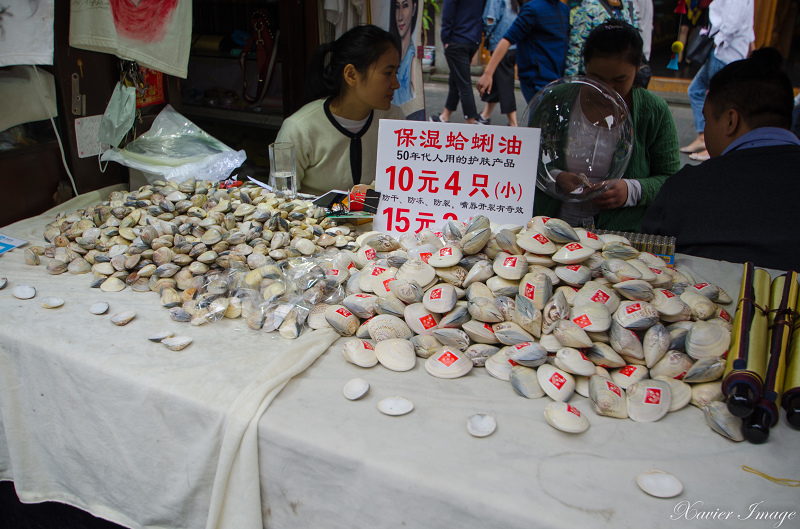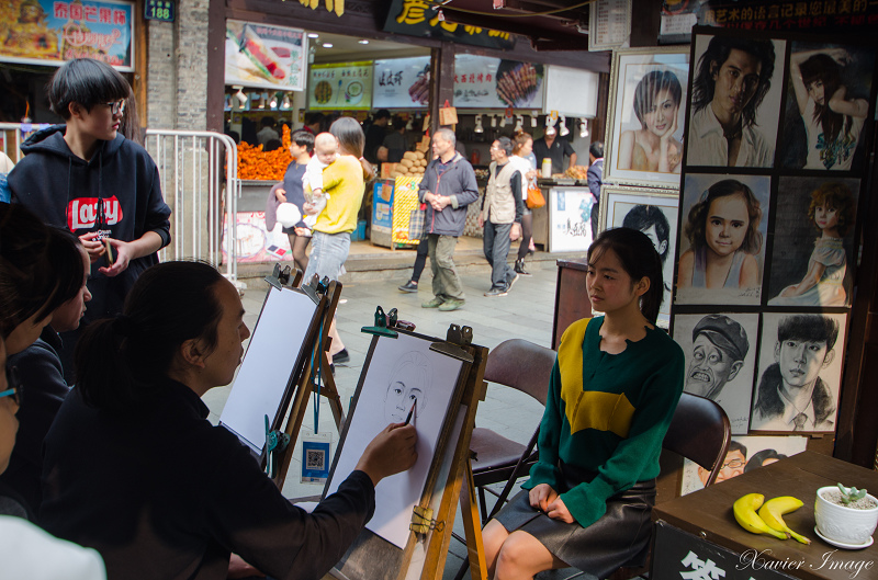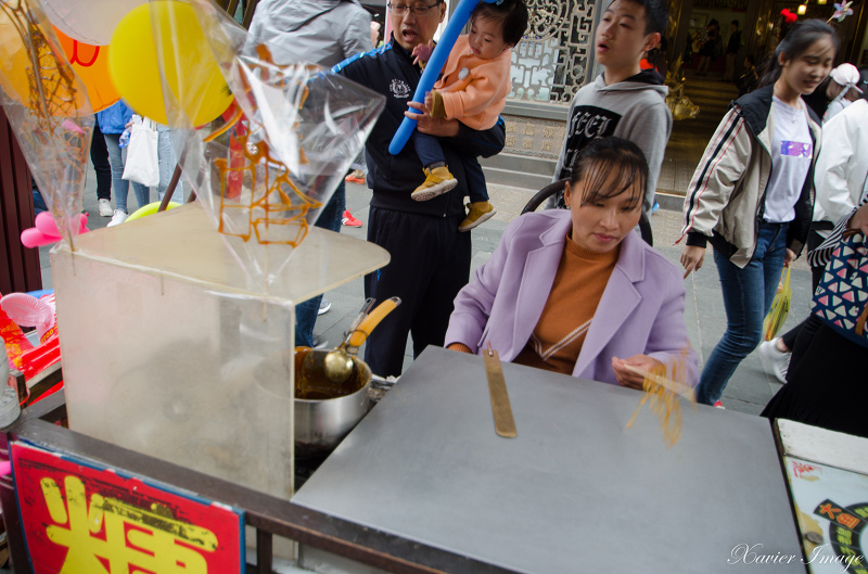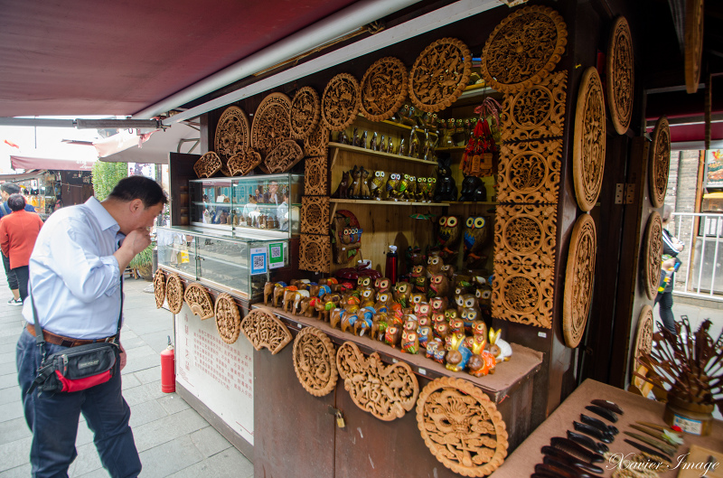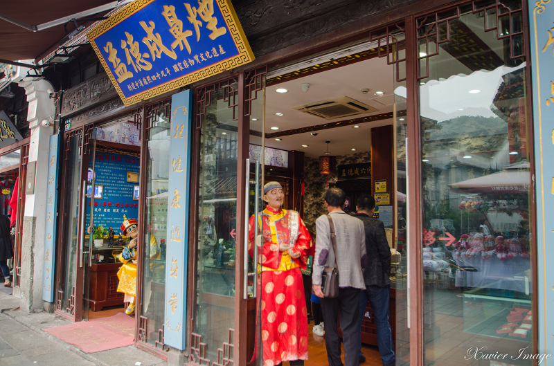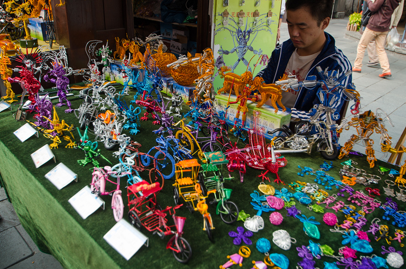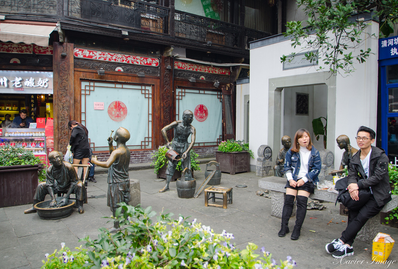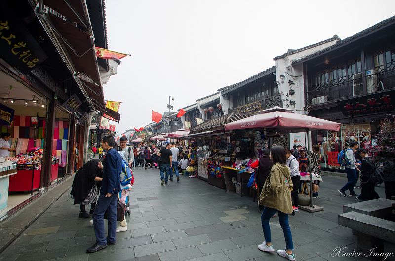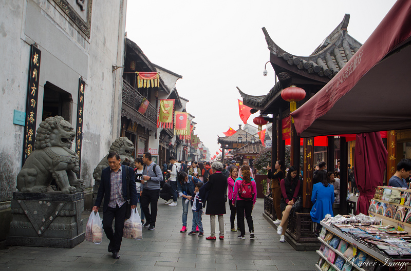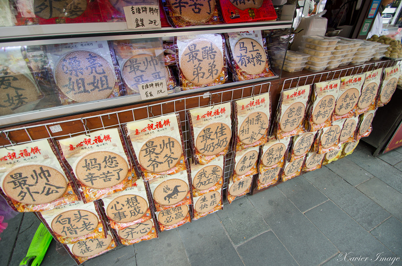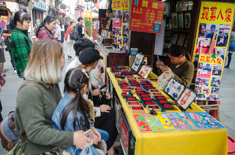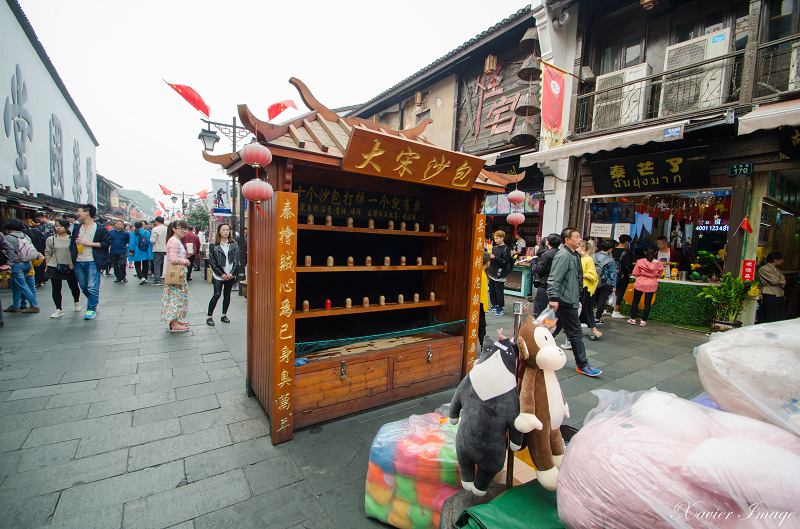 長達數百公尺的步行區,從各式餐館、糕餅舖、茶行、紀念品店到綢傘、摺扇和中國布鞋販賣應有盡有,街道中間還有許多剪紙、木頭雕刻、泥塑跟繪畫等傳統工藝小販,可說非常好逛,在這邊吃頓飯四處走走可以耗上幾個小時沒問題。