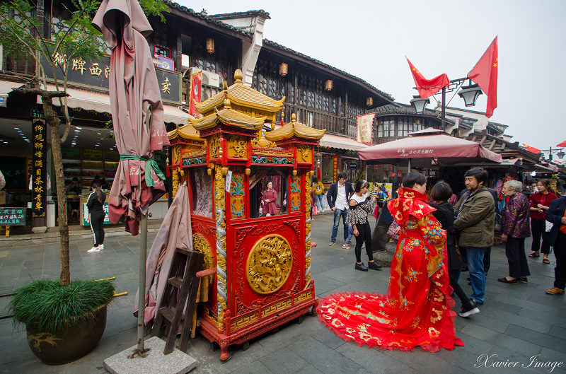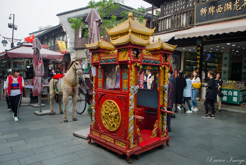 杭州不少景點有提供穿古裝拍照的服務 這裡連花轎、拉車跟馬都有