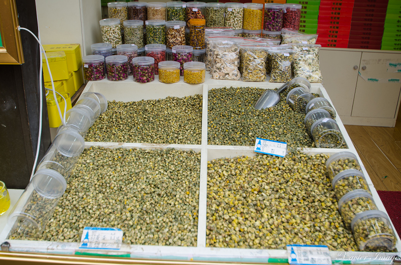 Xavier買了杭菊跟茶葉作紀念 旁邊還有中藥博物館可以逛