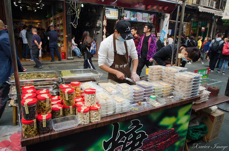 河坊街(清河坊街區)位於西湖東岸不遠處,也是Xavier杭州自由行的最後一站。南宋時期清河郡王張俊的宅第就位於河坊街的太平巷,故這一帶稱為清河坊,自古以來就是繁華地段,周圍現在也發展成杭州熱鬧的商圈之一,為市區內保存最完整的舊街道,以吳山廣場到中河中路之間的步行區店家最密集。