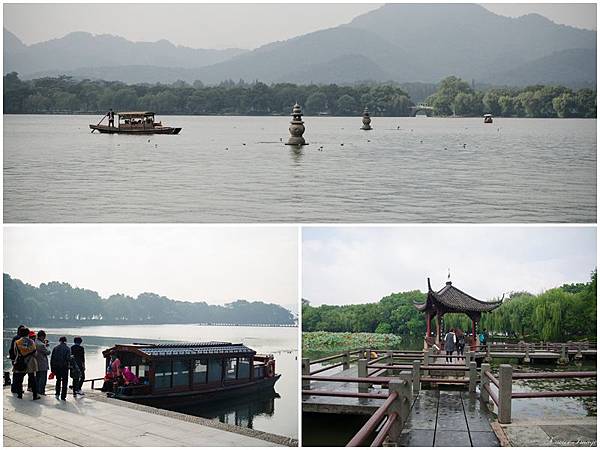 西湖中主要有阮公墩、湖心亭跟三潭印月三座小島,又以三潭印月面積最大,名字由來正是因為在島上可以看見西湖十景「三潭印月」,為Xavier自由行第二天的首站。西湖周遭共有多個渡船碼頭,我選擇從岳王廟碼頭搭船。