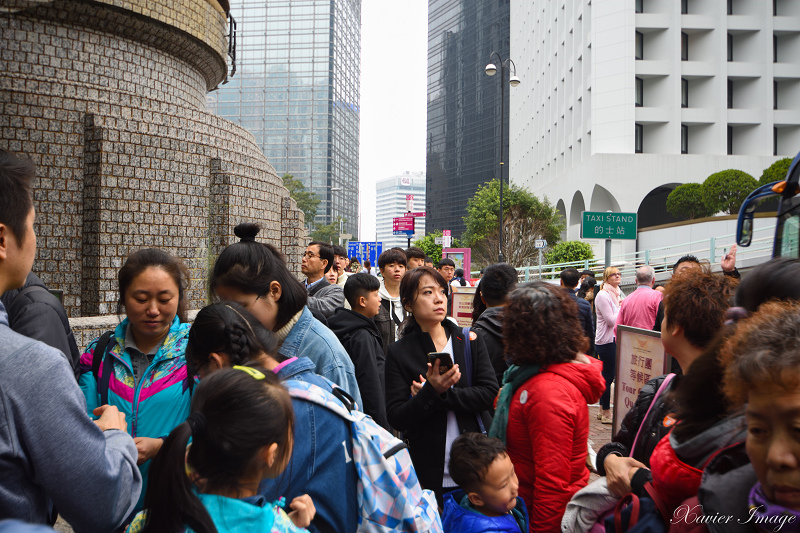 熱門時段等巴士的人也是滿多的,Xavier記得我等15號巴士時前面排了快50公尺的人龍,不過香港的巴士是雙層的,容納人數很多,所以第二台車來時我就上車了。當然,依個人需求你也可以選擇搭計程車(的士)下山,凌霄閣附近就有很多計程車。