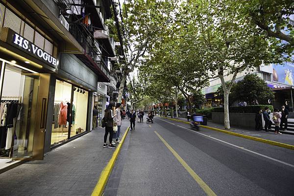 泰康路上林蔭密布 左邊即為田子坊的範圍 往右是地鐵站和商場