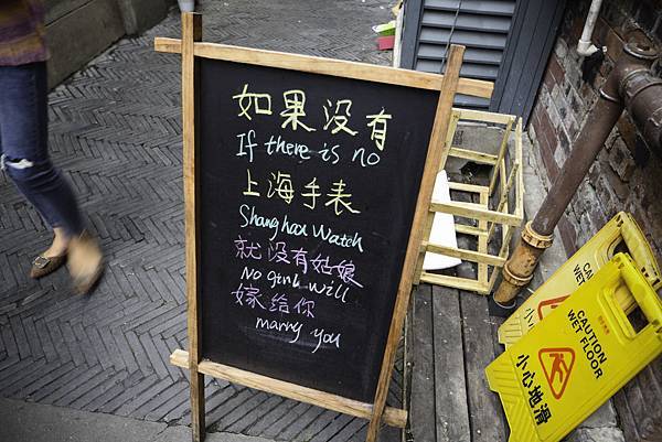 一走進來就看到這個吸睛的廣告看板:「如果沒有上海手錶,就沒有姑娘嫁給你。XD」