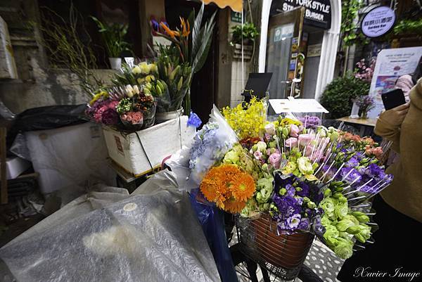 田子坊處處有驚喜 逛到一半看到這臺腳踏車上放滿各式要賣的花束