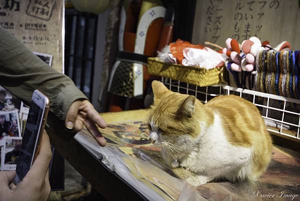 發現一隻慵懶始終瞇著眼睛的貓 瞧 旁邊有人拿著手機比Ya跟牠拍照