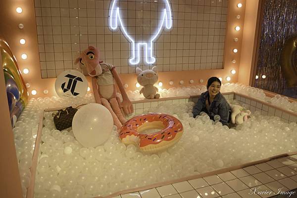 坐在氣球泡泡池裡 感覺女孩子都少女心噴發了
