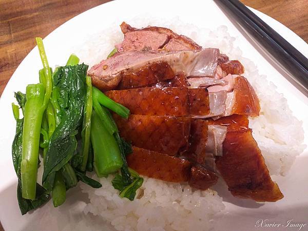 Xavier尤喜歡他們的燒鴨腿飯,除非賣完點不到,否則每次來必吃。怕吃不飽,我還常多叫一份腸粉,在物價較高的臺北東區,不用花太多錢就能飽足一餐。