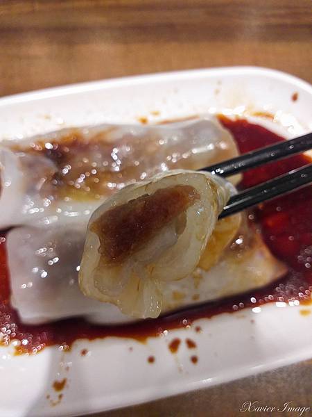 叉燒腸粉叉燒還保有脆脆的口感,醃製入味。不過相較之下醬油表現就沒那麼出色,比較可惜。