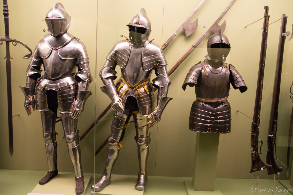 我個人喜歡研究戰史,所以對兵器廳滿有興趣的,這裡展示各洲許多國家的盔甲跟兵器,包含刀、劍、弓和槍砲等,不只是展示兵器,本身也是人類文明史發展的陳述。