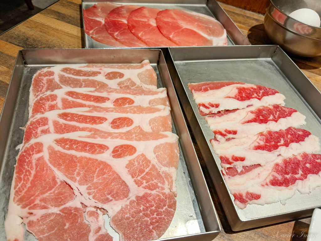 第一次來選擇最簡單的大快朵頤方案(479元),挑了關東豐壽喜燒鍋底,大快朵頤提供美國雪花牛、臺灣豬前腿心、丹麥梅花豬、臺灣雞腿肉跟特選雞肉片吃到飽。