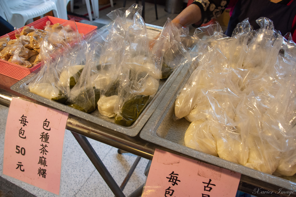 傳統麻糬有白有綠 綠色的是包種茶麻糬 一包一包賣