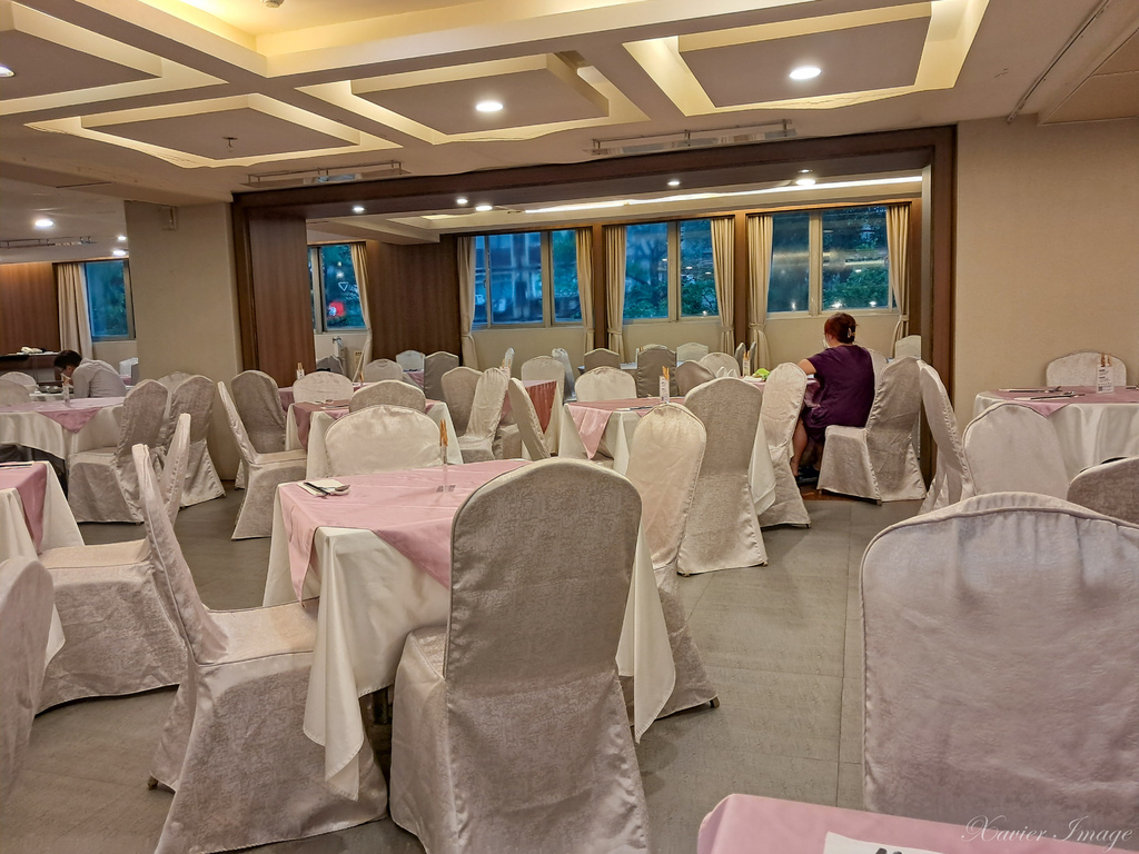 下雨天的平常日晚上 今天剛進來時還沒什麼人 布置我覺得很有宴會場合的fu