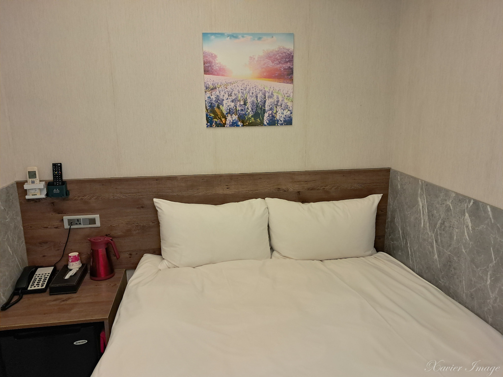 房間不大但還算乾淨 床跟枕頭的軟硬度適中