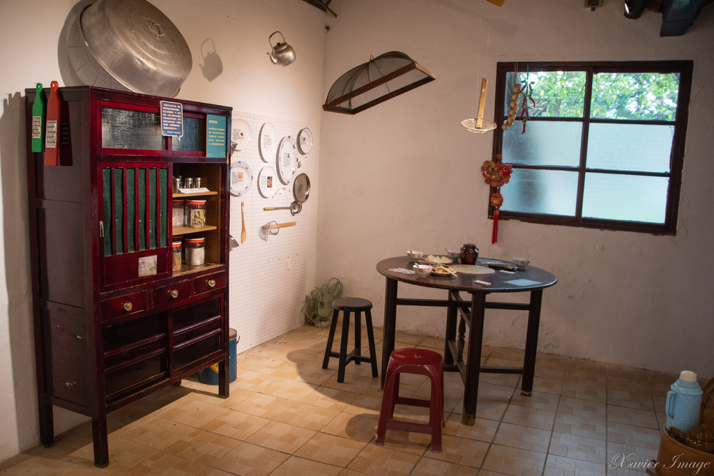 裡面展示眷村過往歷史 連以前的廚房用餐造景都有