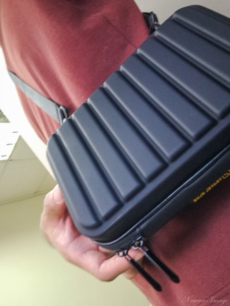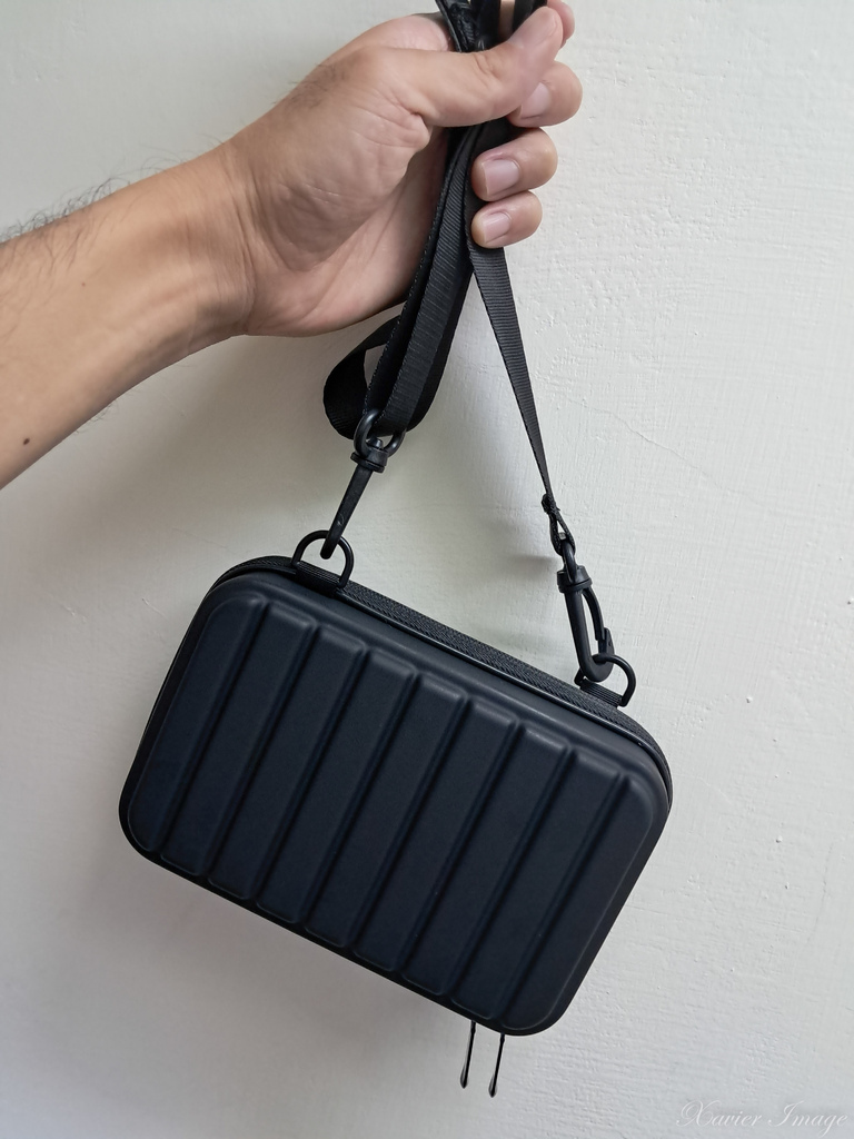 這次印象比較深刻是親膚烤漆斜背包 具備防潑水效果